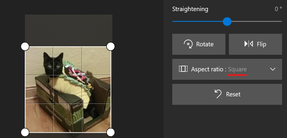 If you want to get precise, like a perfect square, you can select “Aspect Ratio” and set it to square. Then just move the image to fit within the square or drag the corners to zoom in or out.
